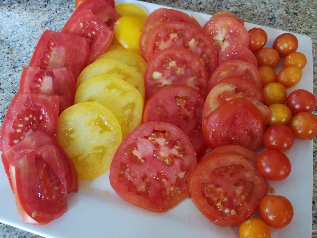 The seedlings were all grown from organic seeds that were harvested in the fall by Burpee. Only Miracle Grow soil products were used in their creation. The pots are made of peat and can be planted directly in the ground. They were started in March and will produce fruit now, if you let them. $10 each