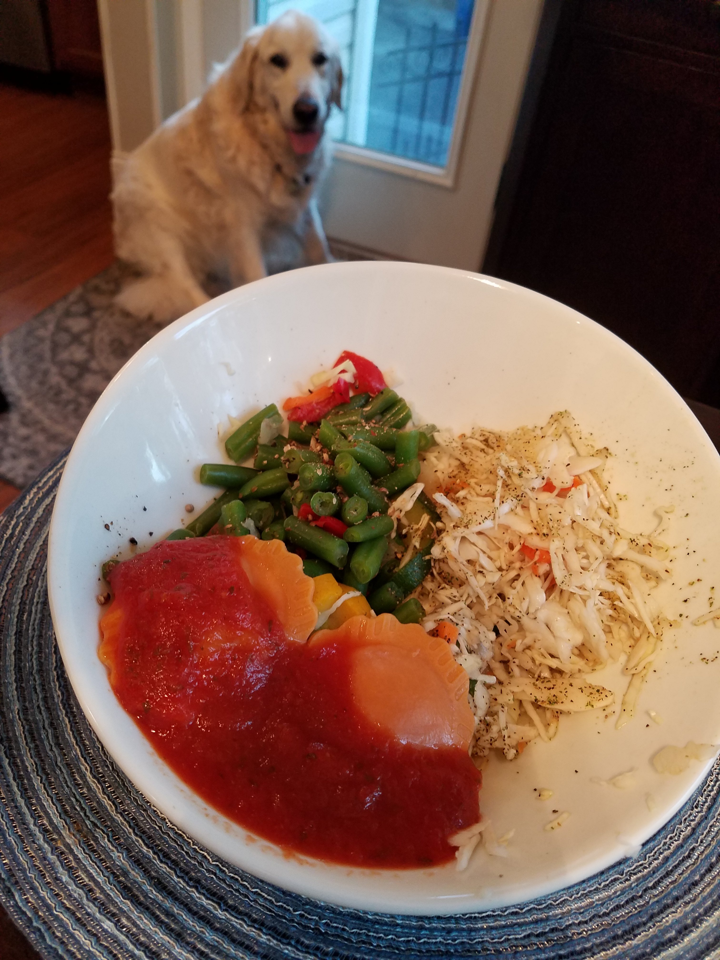 Do you like to snack at 8pm? Me too! With light meals, I just turn the 8pm into another meal- 5 to 8 meals a day and never hungry. This one included veggies, Butternut Squash, Light tomato sauce, steamed peppercorn veggies and hot Pepper Mix. Heaven!