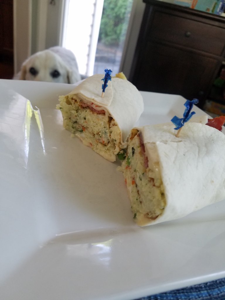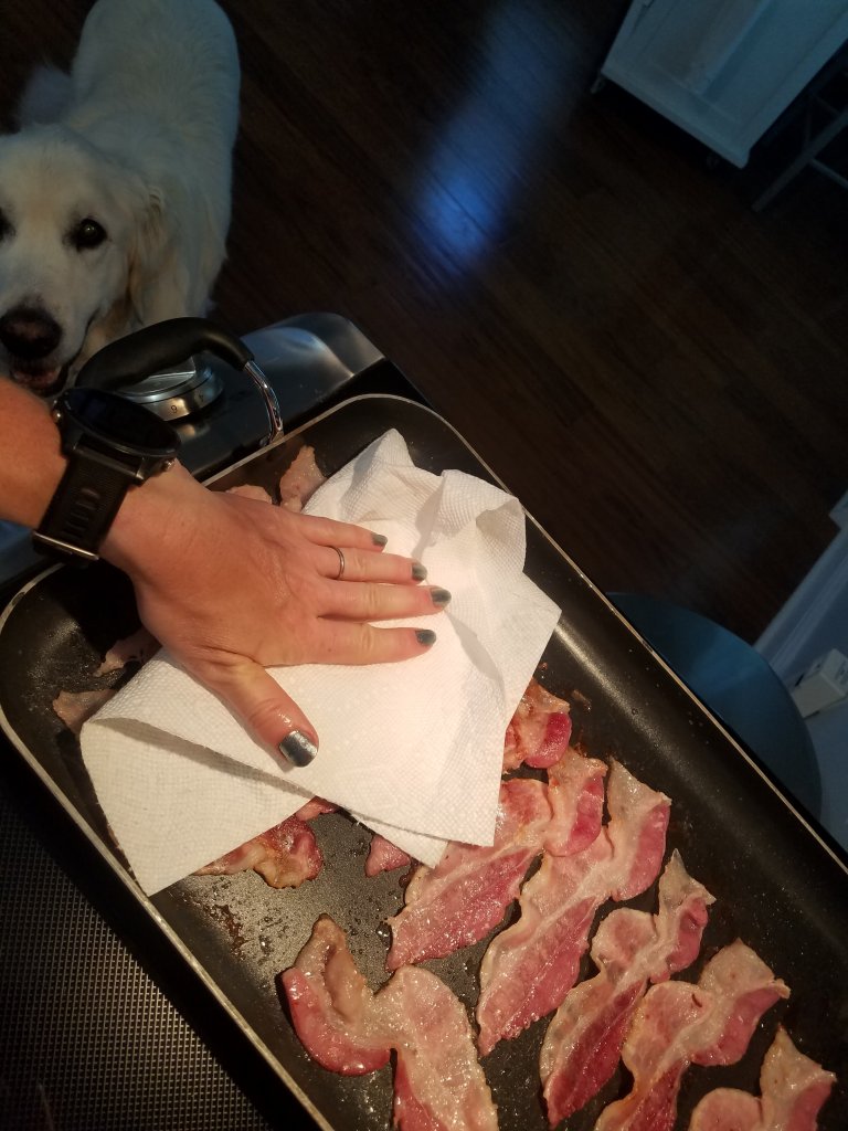 I did the bacon my way…lot of patting off the fat.. The dog was very attentive all throughout the frying session.