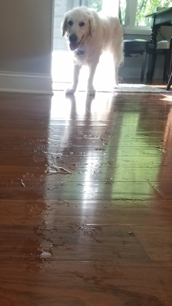 Yep, we live on a lake and we get wet floors…they are not the result of him.