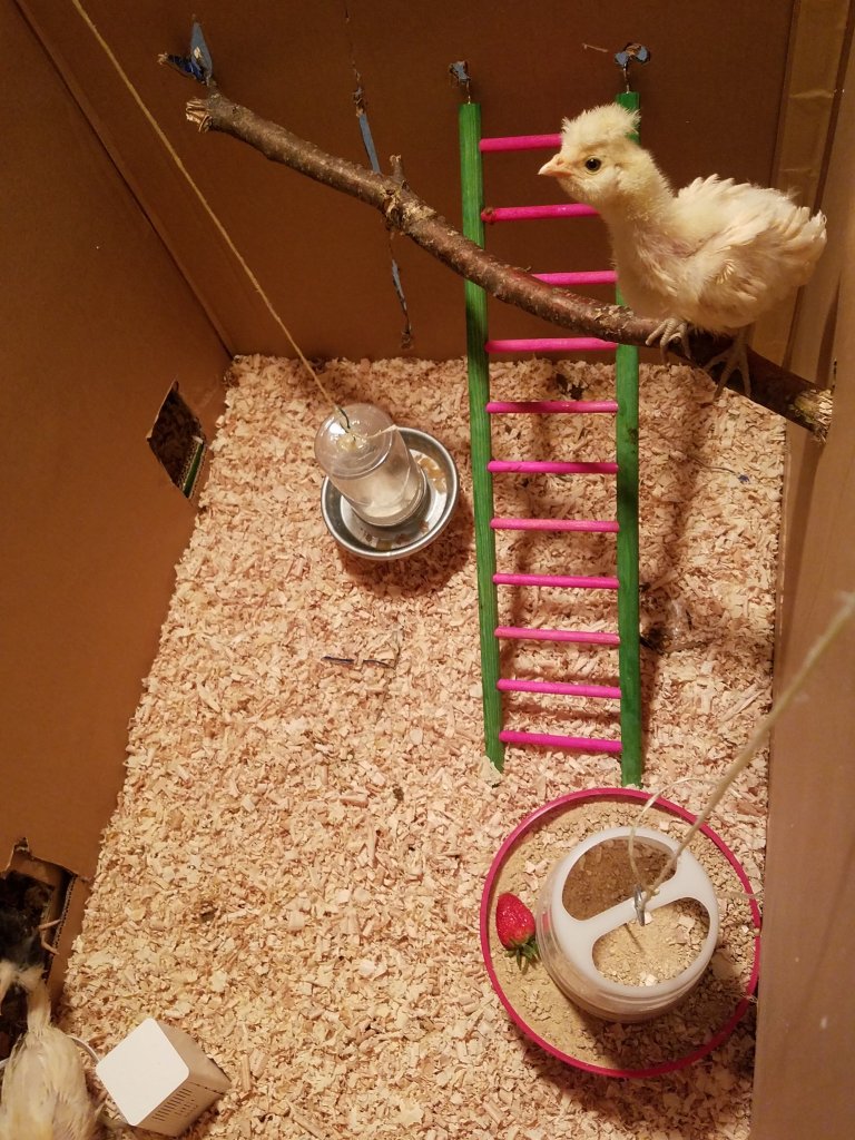 I put the most appealing one in their brooder and waited, and waited, and waited… they were terrified!