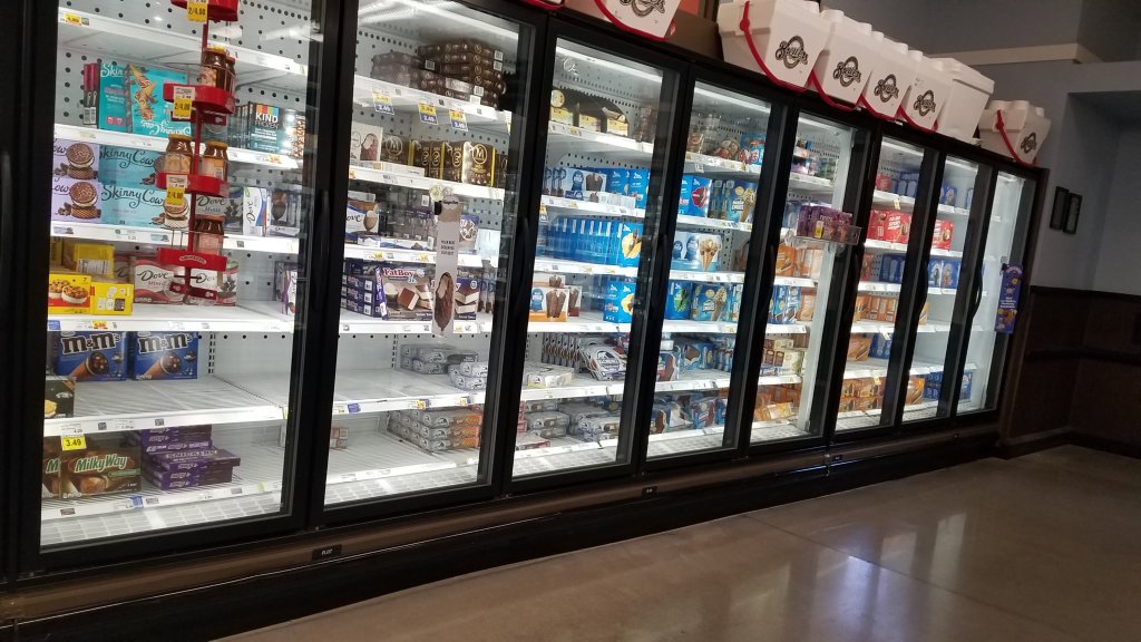 The entrance to the store was crowded, the asiles were crowded. The bacon was picked over, lemonade sparse, milk full price, eggs were nearly gone!? Then the ice cream was half gone! I don’t like that cold stuff, but why was it 1/2 gone?