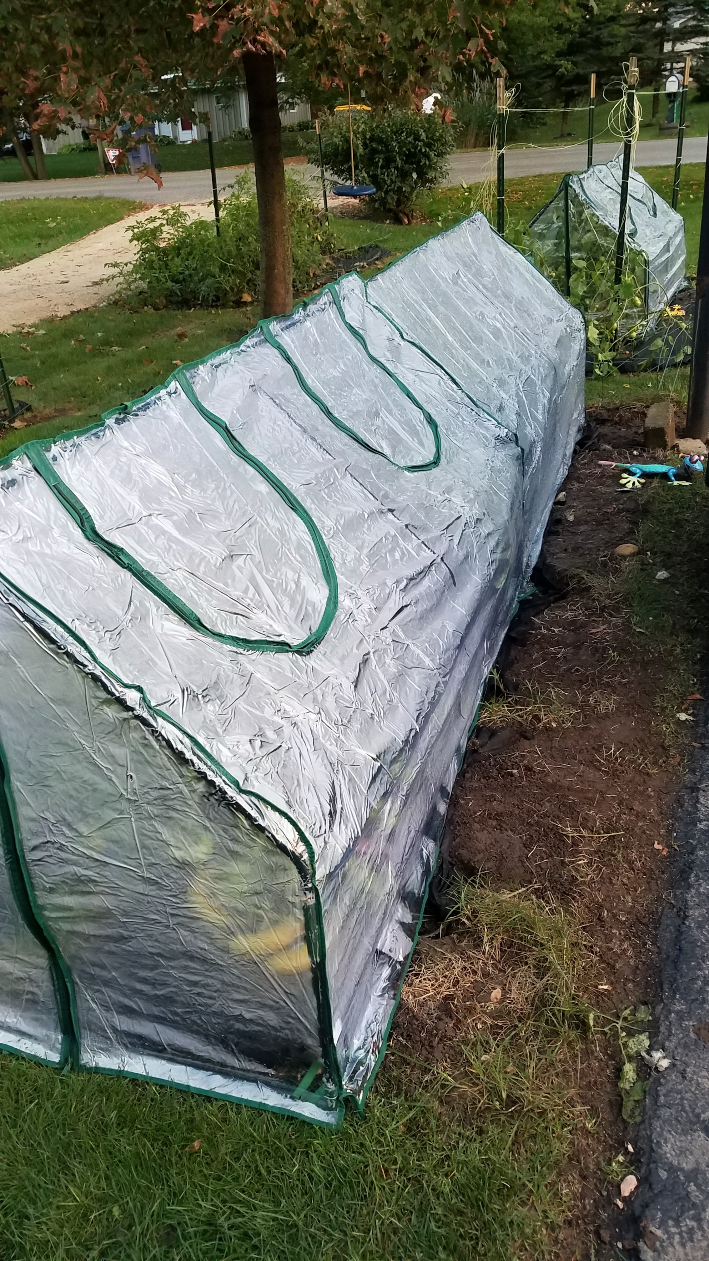 5) Broke our backs installing temporary grow tents. Naturally, it was in the rain and we froze. This method is a hard sell as I don’t believe a little plastic or blanket will improve the temperature. However, with my Master of Science Degree, I can conceiveably understand the math. I get it wth the equation of pv=nrt. Essentially, play with increased moisture levels and gain higher temperatures. Thus, the broken back was readily accepted…It was the most scientific explanation to extend the growth season. As you can witness in our photos, we also added green bananas to the tents to facilitate gas reactions. I also plan to add the heated hand warming, and I think they will make the world of difference. Play more with that equation and get results!
