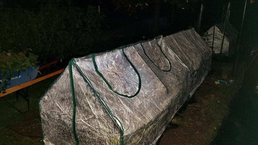Yep, we have 1 more temporary greenhouse installed. It broke my back and we ran out of light in the midst of a double rainbow. Thankfully, someone gifted me pain relievers. I stretched my back 4x today and put the pain patches on every 4 hrs.
