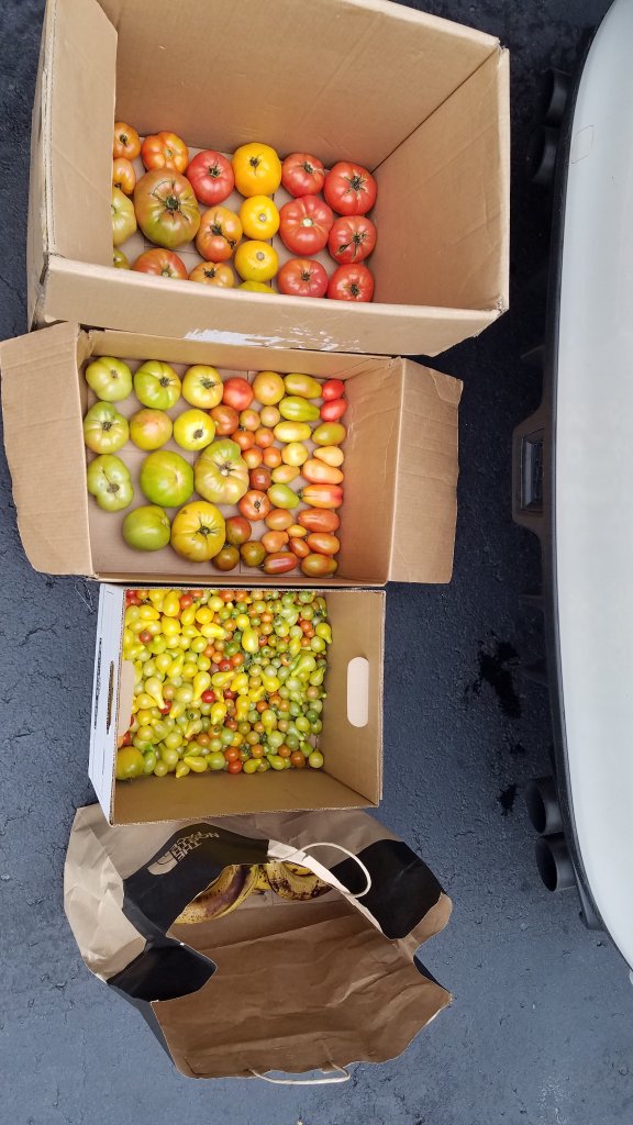 We doubled last week’s donations by picking the pink and yellowing tomato produce. We put them through our ripening boxes and wallah! Double donation.