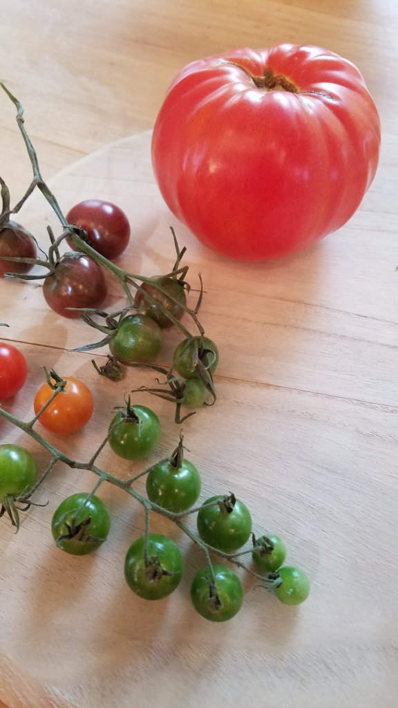 Our variety of tomatoes included Heirloom Brandywine, Green Zebra, Black Prince, German Matina, Black Cherries, Sweet Red Cherries, Yellow Cherry Pears, Romas, San Marzano, Spaghetti Squash and tons on Bananas that were used for ripening! What a fun week.
