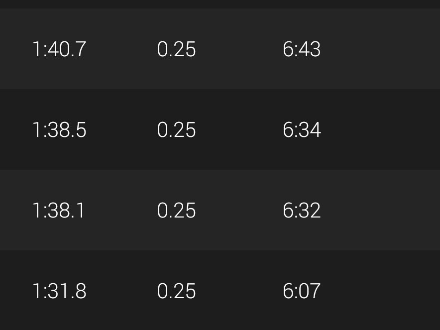 I warmed up and my legs felt fast… It was a great time to do that Virtual mile that I wasn’t fit for. I started strength workouts so I backed off on mileage. I was down to 15 miles/ week on top of 2 hrs of strength. That didn’t deter me. I started my run and hit 3 negative splits!