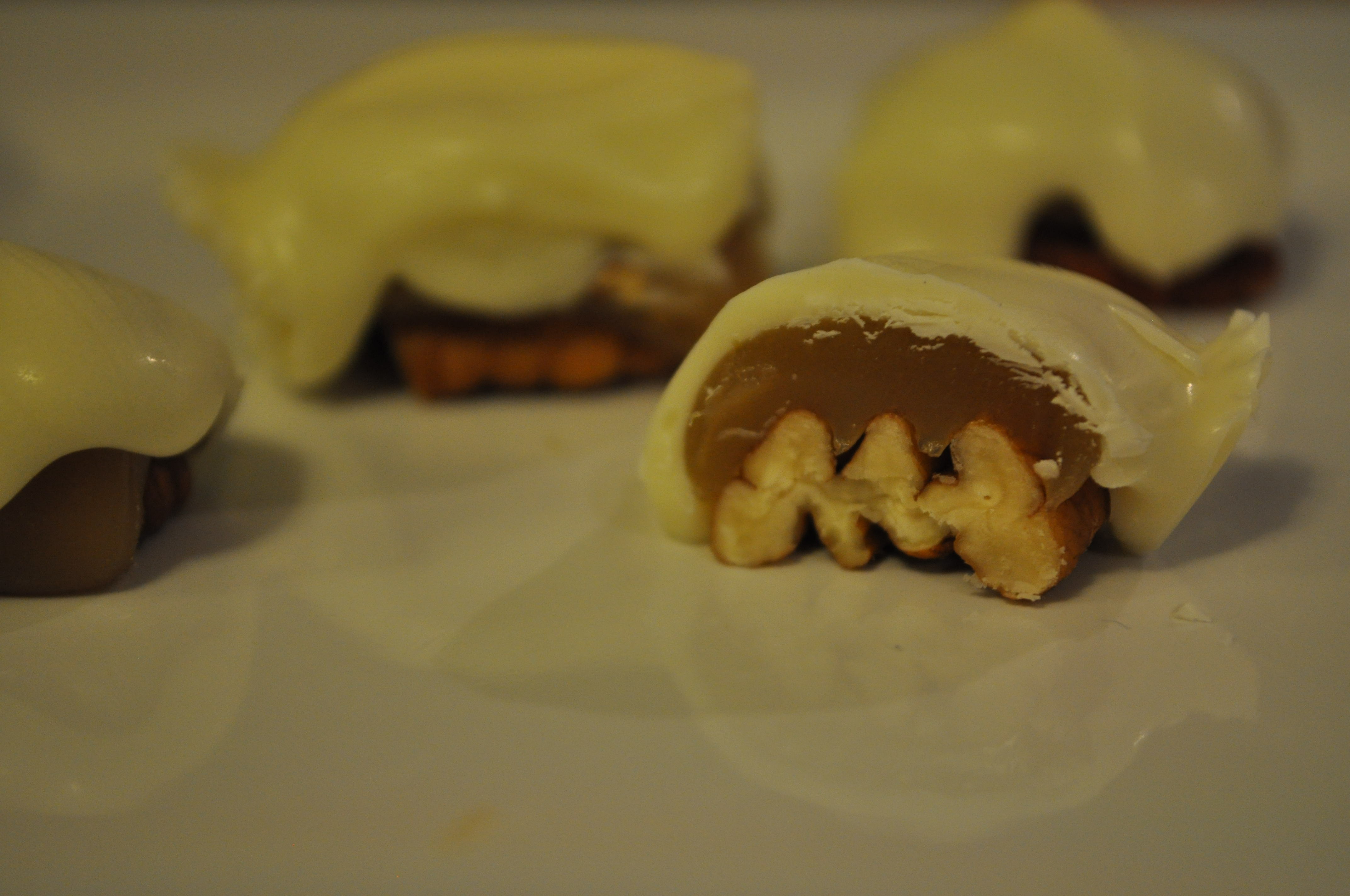 Ooohhy, Gooey, salty-sweet, crunch with a slam. This bite size turtle is just the right size for cocktail parties. Within less than an hour, you can have a plate size of babies to share with your closest friends.