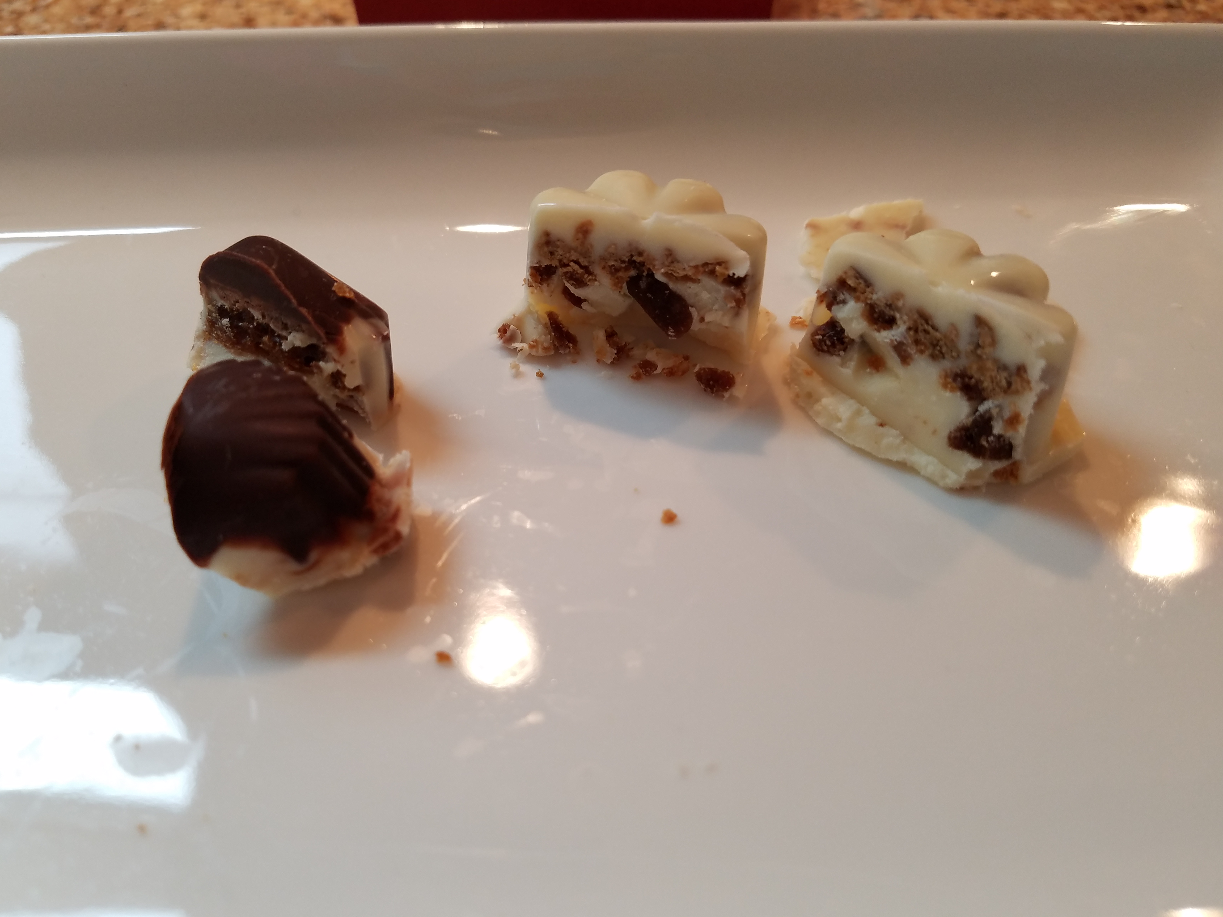 - Score lines into chocolate and remove from forms.