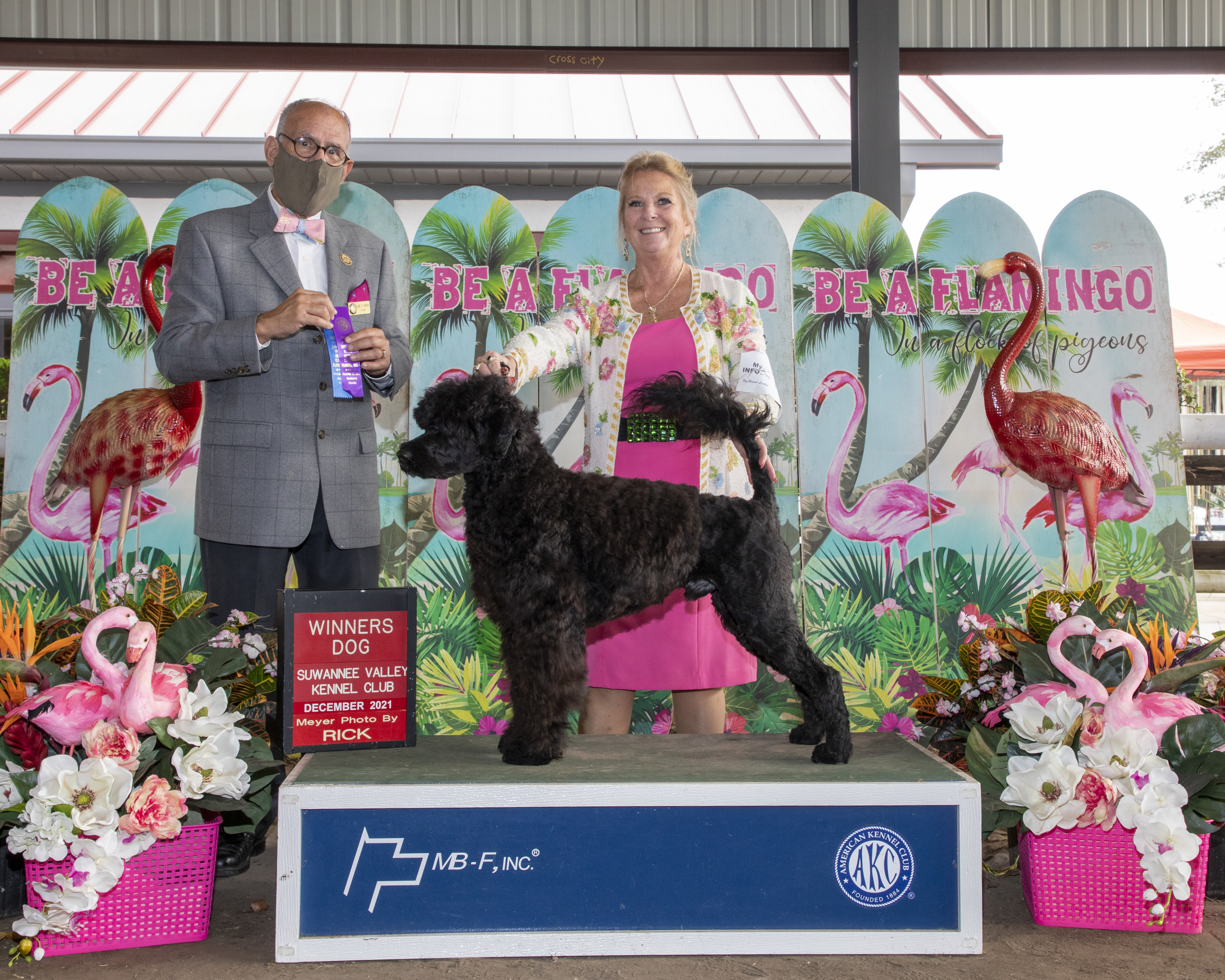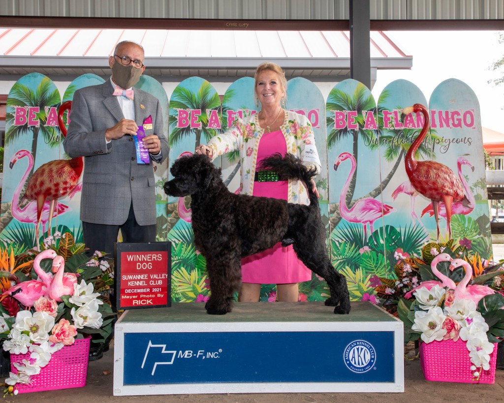 Moses was bred from Agility lines. He is the 5th multigeneration of Excellent/Normal Hips and Elbows. He achieved his National Champion Title in Conformation and in Fast CAT. We are still showing some Conformation, Fast CAT and in training for Obedience and Waterwork. His deep black coat is Wavy, and he carries genes for brown and curly. He has very dark eyes, a mild temperament and the center of the range height, 21.5″. He is available at Stud with Frozen or Fresh Cooled for approved matches.